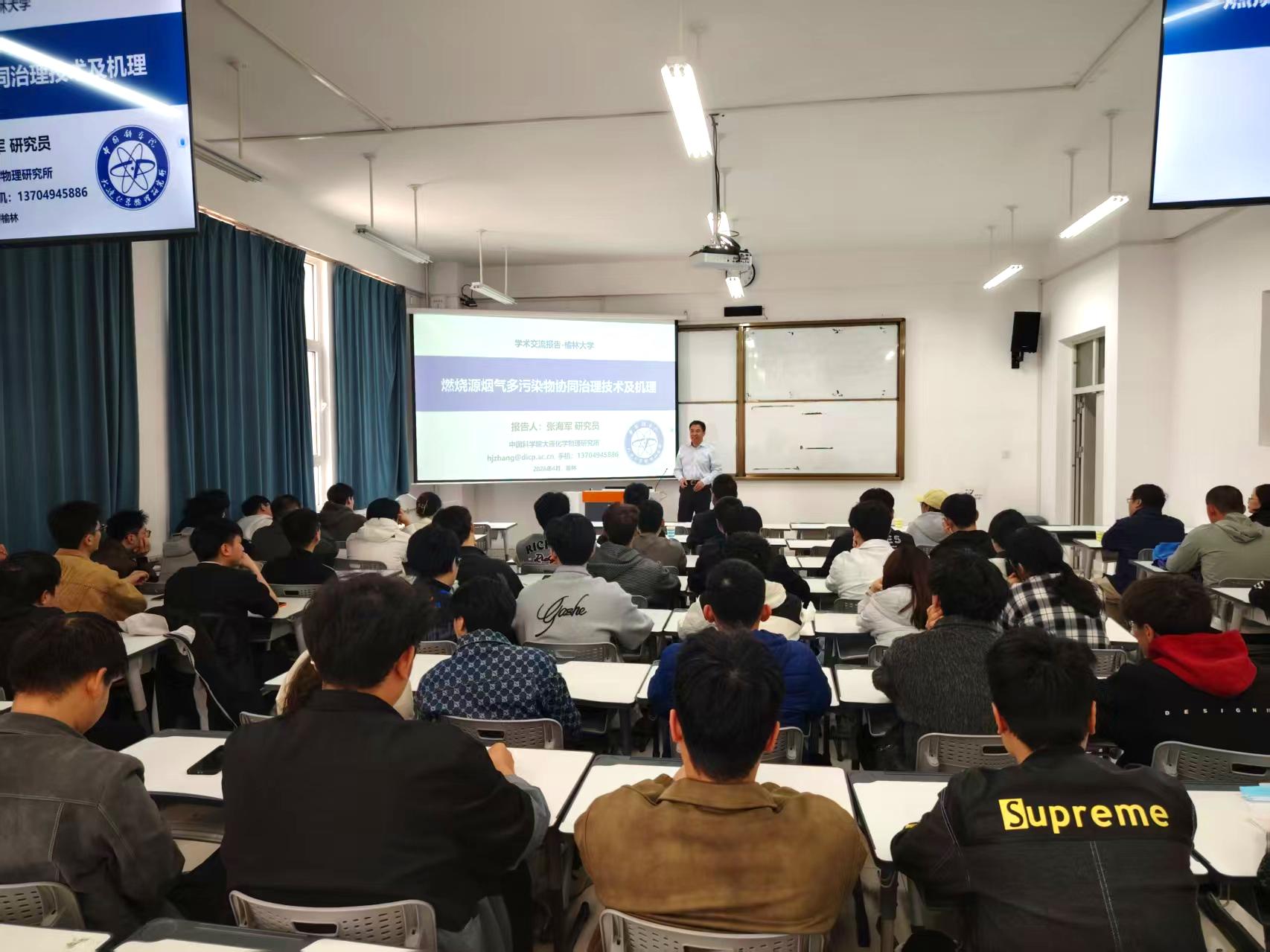 4月22日,科教融合基地2026年第二期“名师讲堂”活动在榆林大学化学与化工学院(以下简称“化工院”)举行。本期邀请中国科学院大连化学物理研究所首席研究员张海军现场授课。活动由化工院副院长范晓勇主持,共70余人参加。