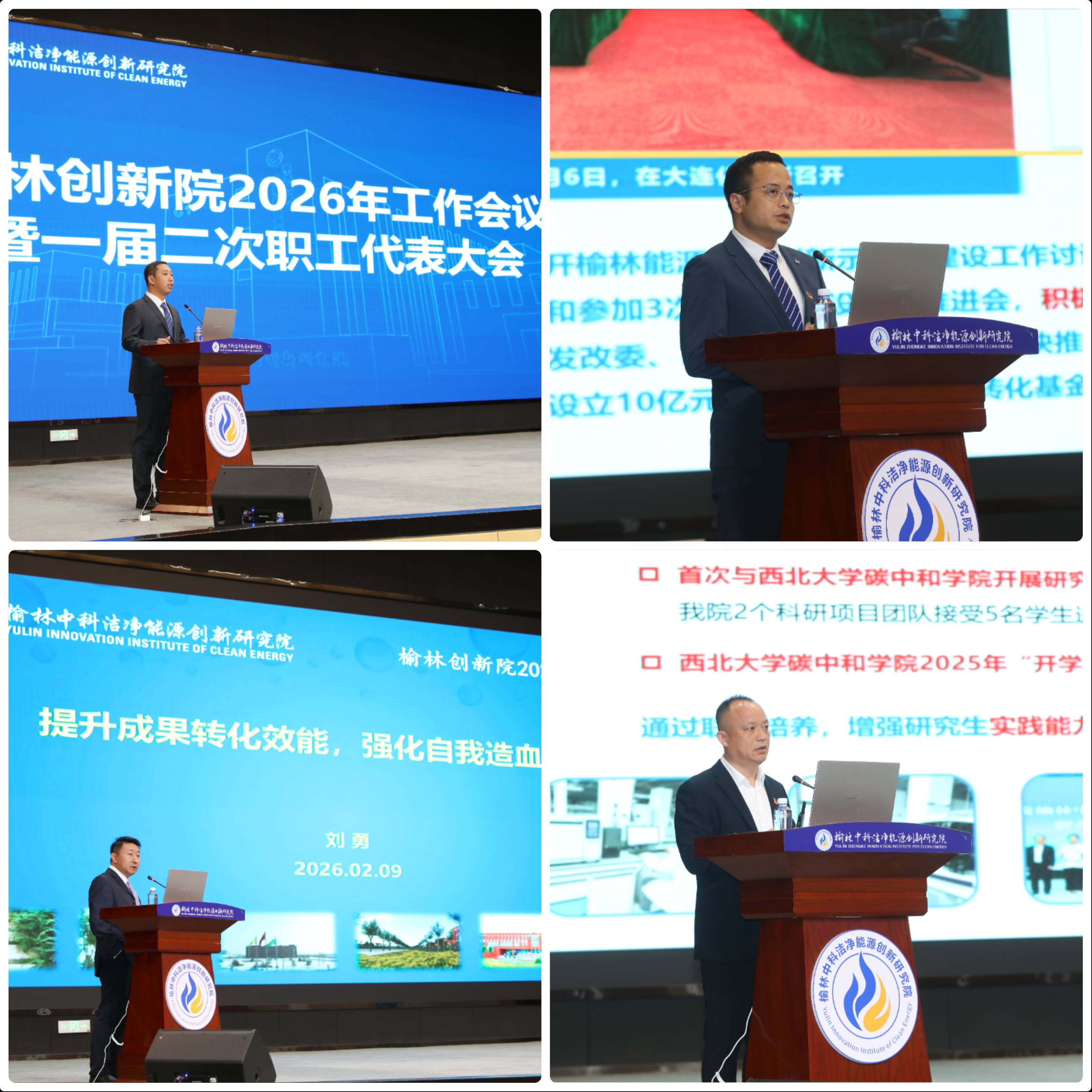 2月9日,我院召开2026年度工作会议暨一届二次职工代表大会。本次会议是在“十四五”收官、“十五五”启航的关键节点召开的一次重要会议。我院书记杨悦出席会议并作大会报告,欧洲科学院院士、清华大学首任碳中和讲席教授、我院“榆林低碳能源催化中心”院士工作站进站院士唐军旺应邀出席会议。我院副院长卢巍、陈玮、刘勇,院长助理张箭,中科榆林公司领导出席会议。卢巍、陈玮、刘勇分阶段主持会议。我院职能及支撑部门全体人员、部分在榆科研人员等100余人参加了会议。